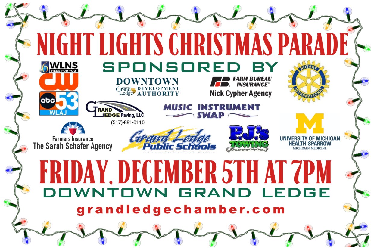 The Annual Night Lights Christmas Parade is a spectacular night time parade packed full of lots of lights and music! It starts at the Grand Ledge Fire Department at 500 North Clinton Street and then makes its way straight down Bridge Street to Scott Street.